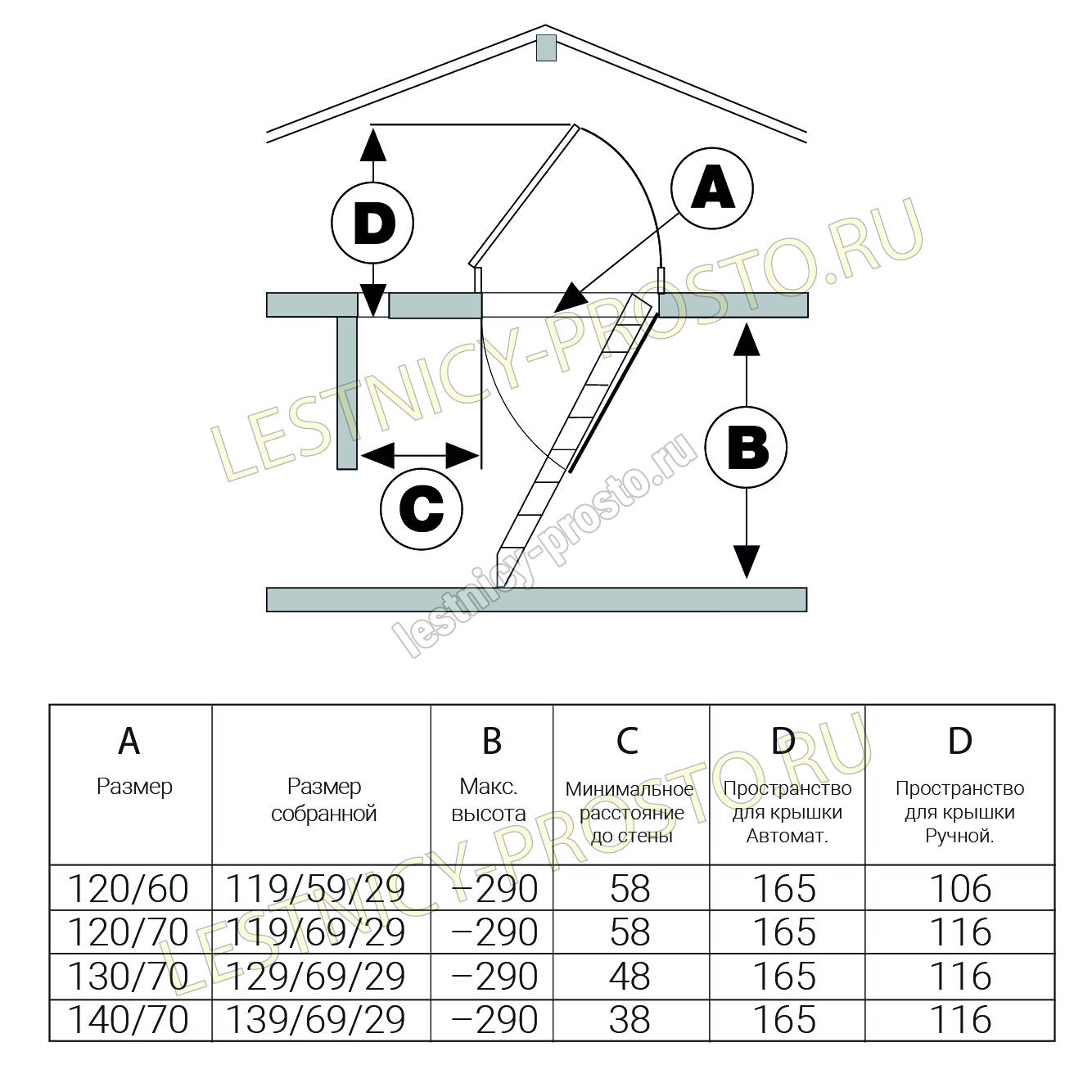 Лестница с электроприводом MINKA TYPE 18 UNIVERSE 70×120 см, h-290 см