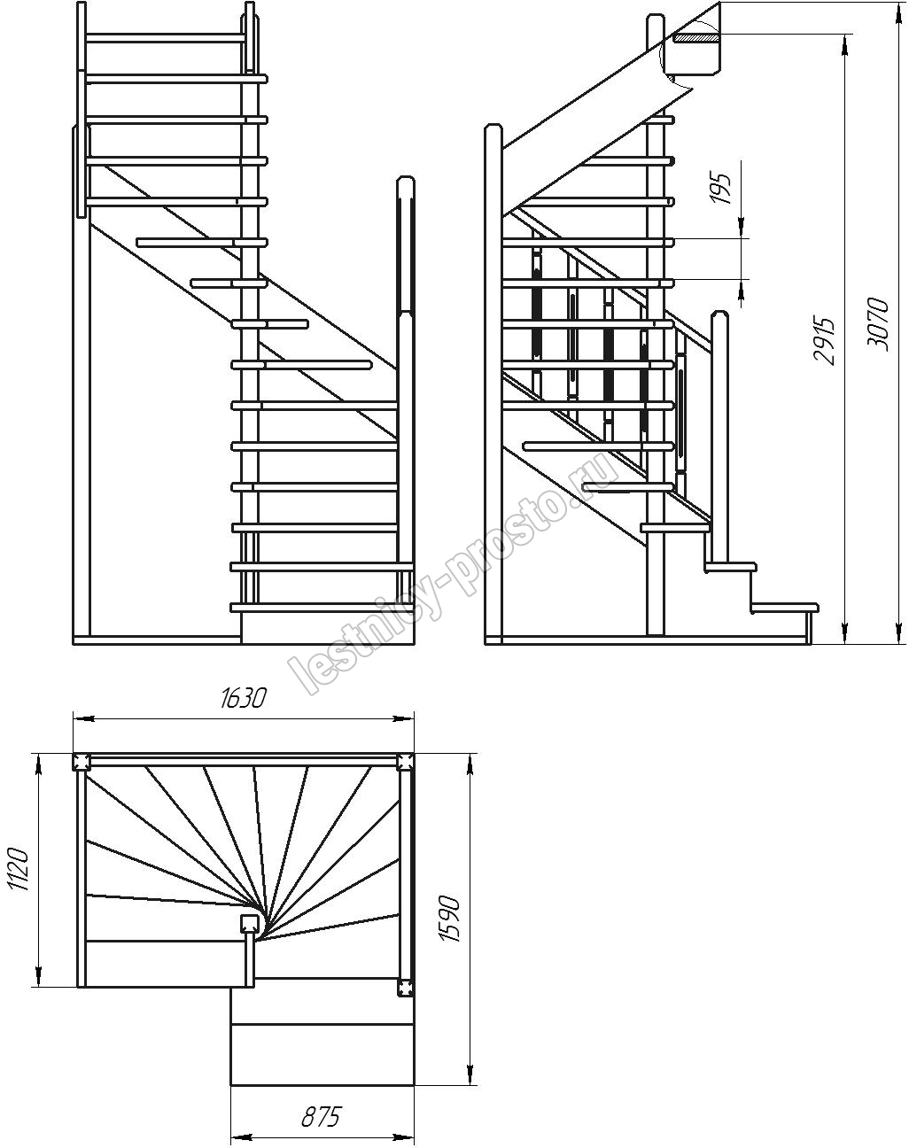 Удобная поворотная лестница на второй этаж. Дополнительные ограждения по первому маршу обеспечивают безопасность при подъеме и спуске, кроме того, небольшой угол подъема открывает всю площадь ступеней. Монтаж осуществляется силами двух человек на объекте по указаниям, приведенным в паспорте на лестницу.