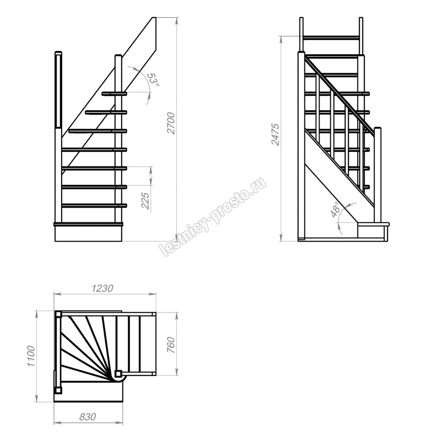 Лестница выполнена из древесины хвойных пород 8 % влажности.