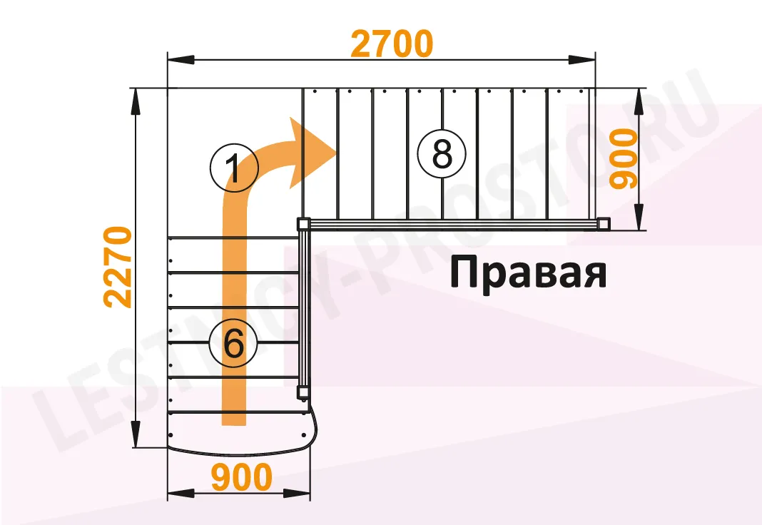 Схема лестницы К-002М/4 с поворотом направо
