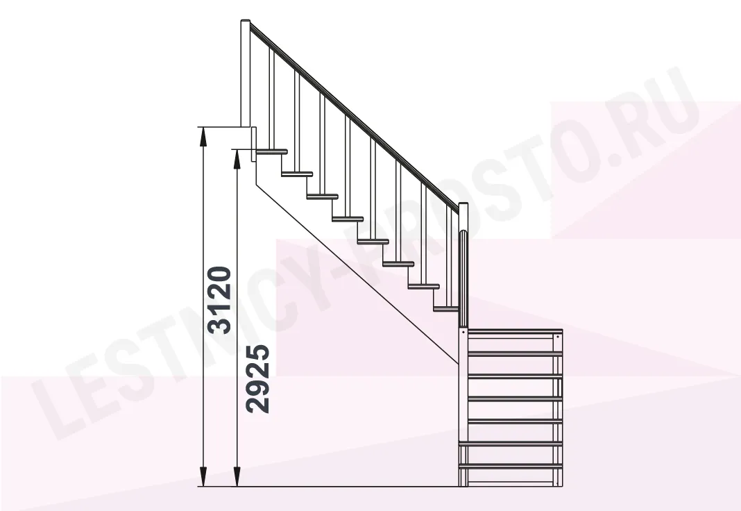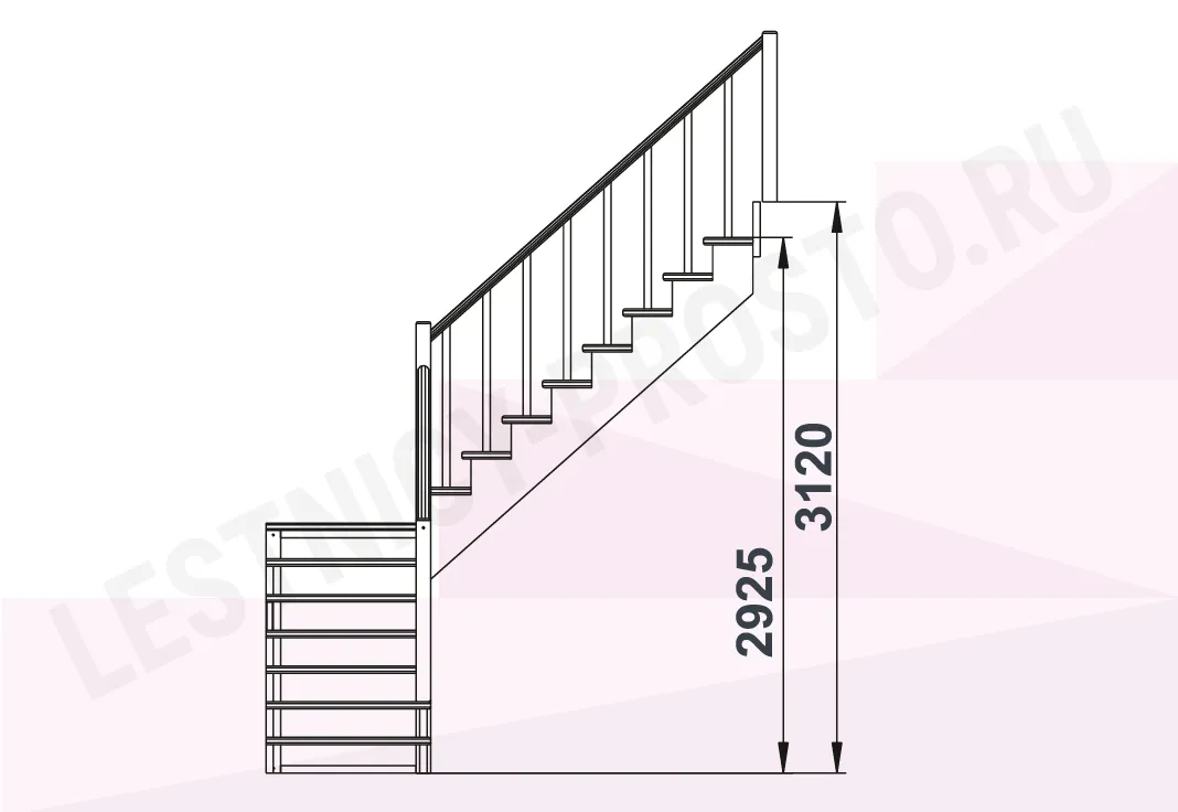 Базовый комплект включает в себя деревянные элементы лестницы с подступёнками и ограждения без какого-либо покрытия.