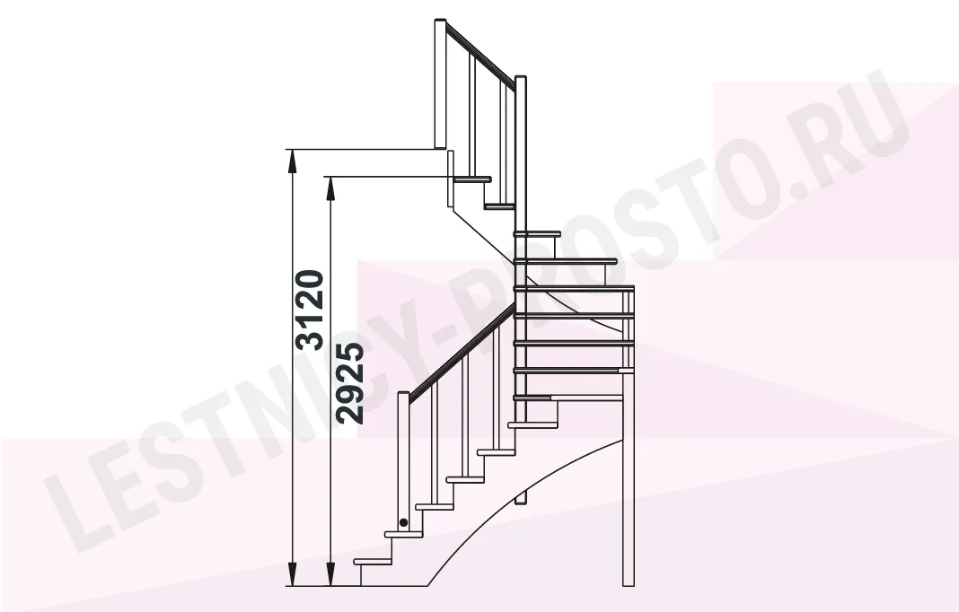 Базовый комплект включает в себя деревянные элементы лестницы и ограждения без какого-либо покрытия.