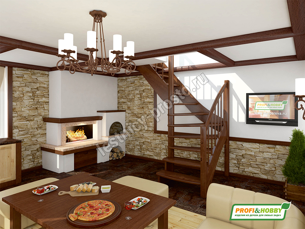 Базовый комплект включает в себя деревянные элементы лестницы и ограждения без какого-либо покрытия.