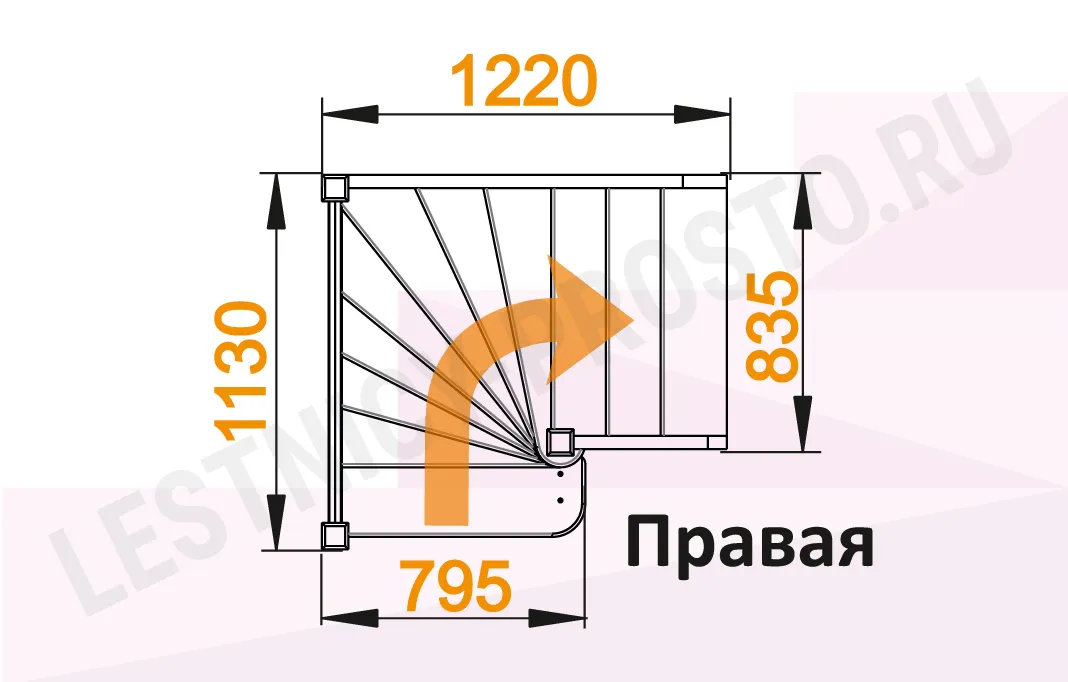 Схема лестницы ЛС-91М базовой с поворотом направо