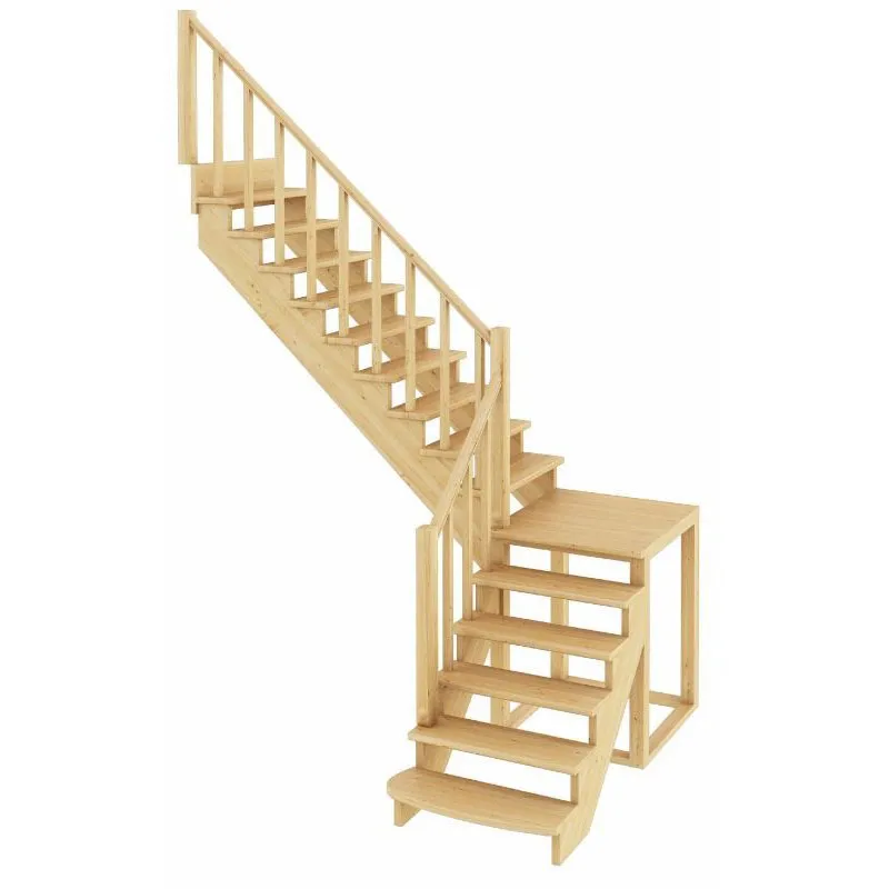 Ступени и поручень лестницы изготовлены из ясеня, остальные элементы из сосны.