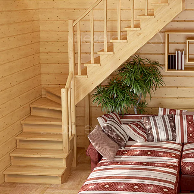 Лестница изготавливается под заказ. Возможны варианты подходящие под необходимые размеры проёма и высоту помещения. Базовое ограждение можно заменить на кованое или точеное. Лестницу можно дополнить подступенями, бортиками, миниподступенями. Первую ступень можно заменить на пригласительную - лекальную. Классическая модель поворотной лестницы раскрывает всю природную красоту натуральных материалов. У лестницы комфортная высота шага, удобный широкий марш и угол подъема. Указана стоимость лестницы без какого-либо покрытия.