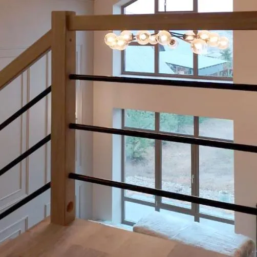 В комплекте: 3 прямых деревянных столба без какого-либо покрытия и профильный поручень без покрытия, комплект из 3 ригелей из стали (окрашены в цвет каркаса или хром по желанию) диаметром 12 мм., необходимая фурнитура.
