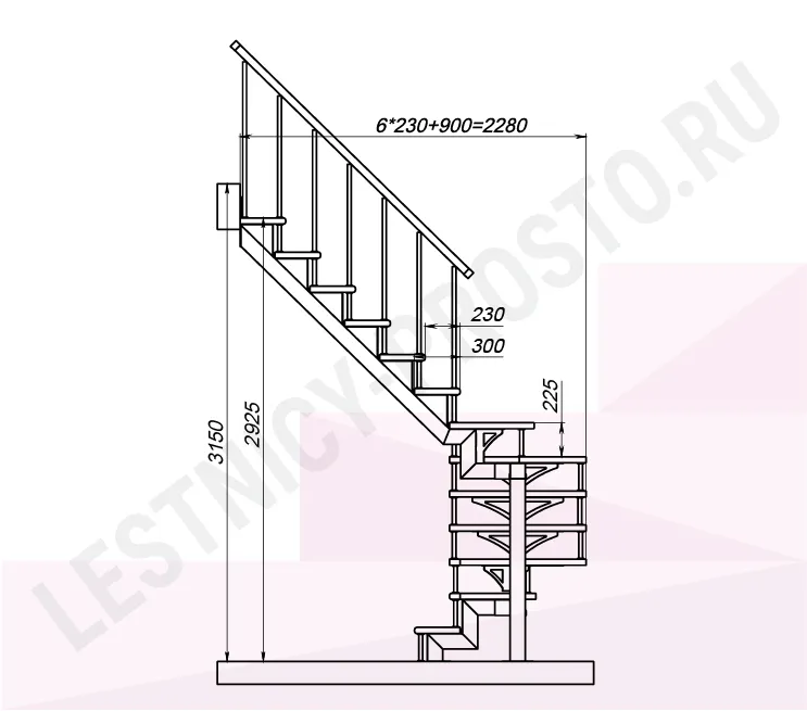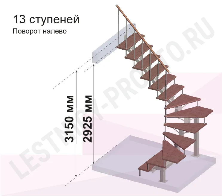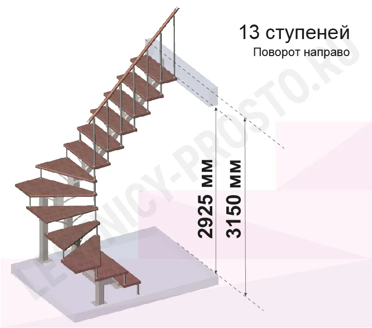 Высота лестницы 2925 - 3150 (13 ступеней) мм