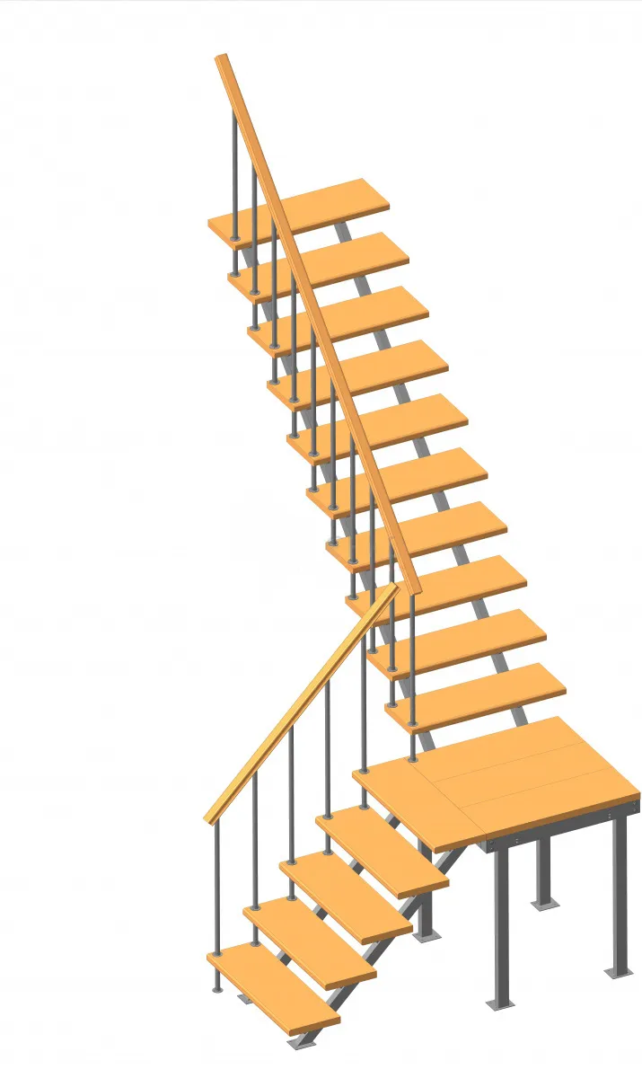 Каркас лестницы представляет собой набор модулей, которые комплектуются уже готовыми к монтажу.