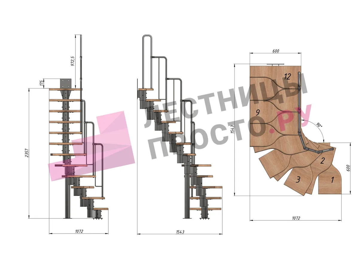-Возможность установить лестницу как прямую, так и с поворотом внизу или вверху; при этом нужно понимать, что поворот менее удобен, чем прямой участок лестницы.