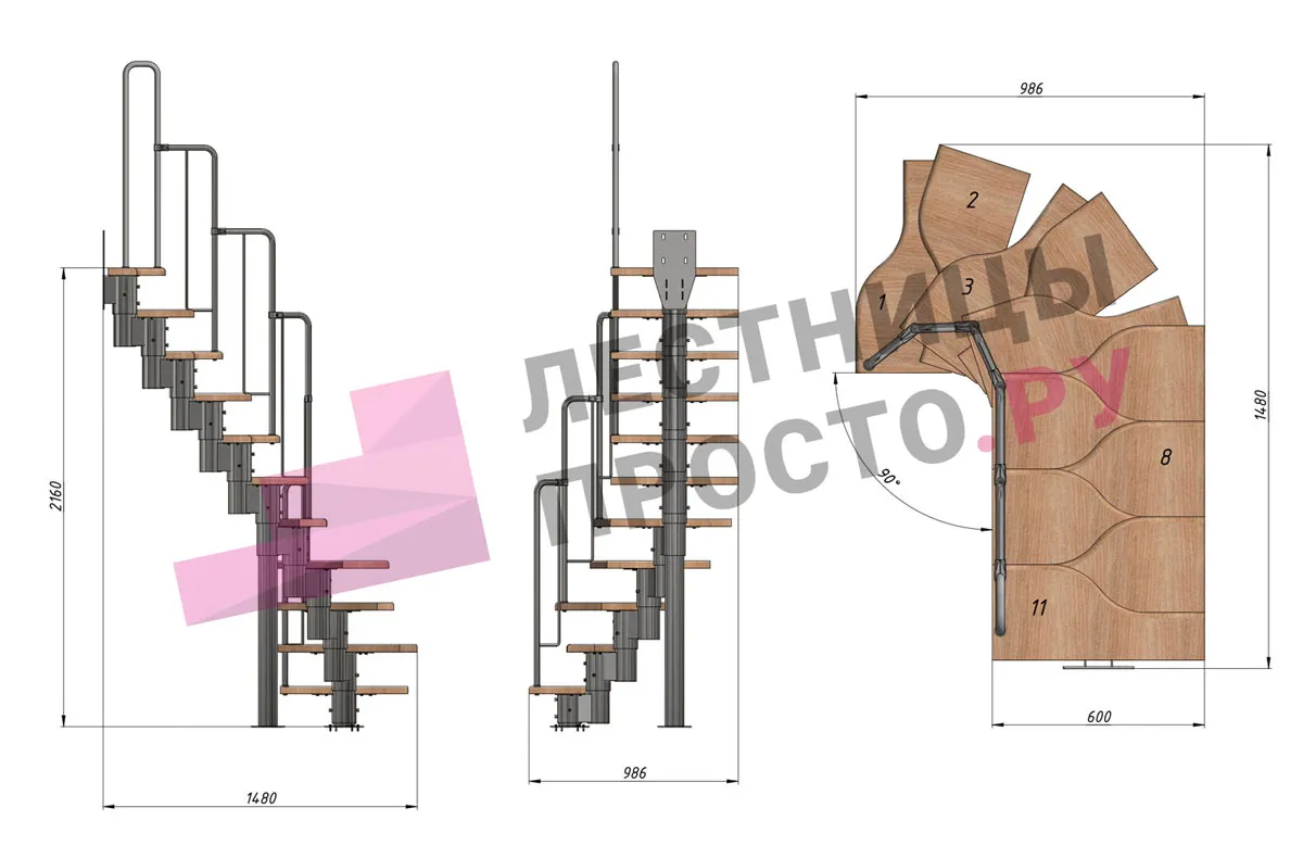 Лестница Prosto Urban Black гусиный шаг 600 мм/ Ступени из берёзы мультиплекс
