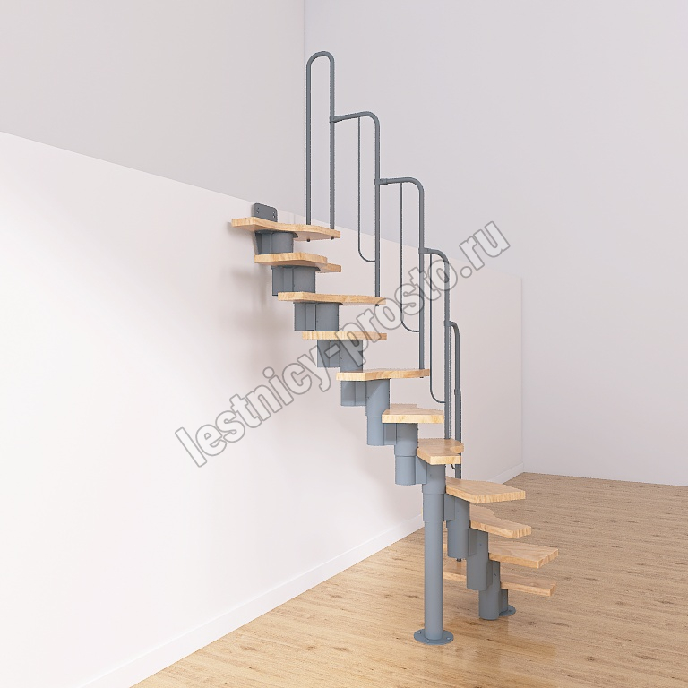Лестница Prosto Urban Grey г-образная гусиный шаг 600 мм, h198-288 см (11 ступеней)