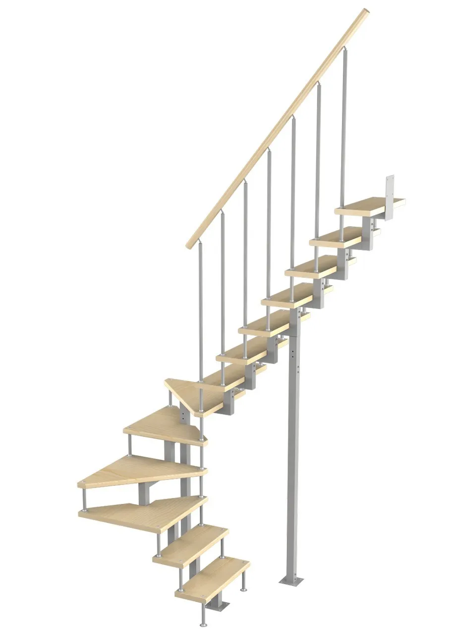 Модульная малогабаритная лестница Эксклюзив 2925-3150, Белый, Бук, Нержавеющая сталь
