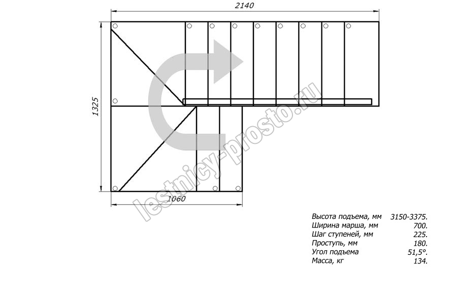 Модульная малогабаритная лестница Эксклюзив 3150-3375, Серый, Сосна, Нержавеющая сталь