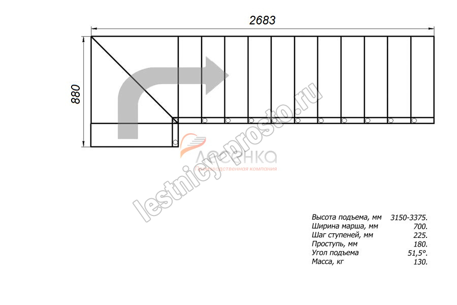 Количество ступеней на первом и втором марше может меняться между собой в зависимости от размера проема, при этом общее количество ступеней не меняется!!!