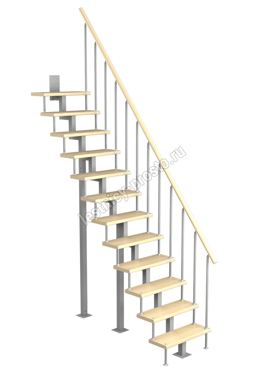 Модульная малогабаритная лестница Линия 2700-2925, Серый, Сосна, Нержавеющая сталь