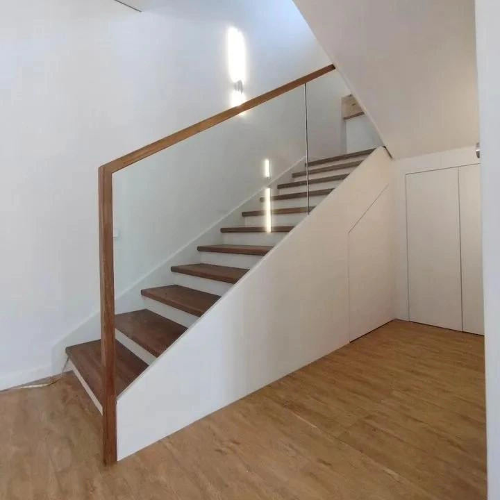 Ограждение из ударопрочного стекла, поручень и столбики из бука.