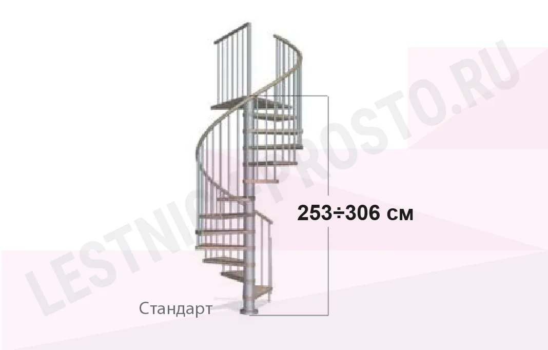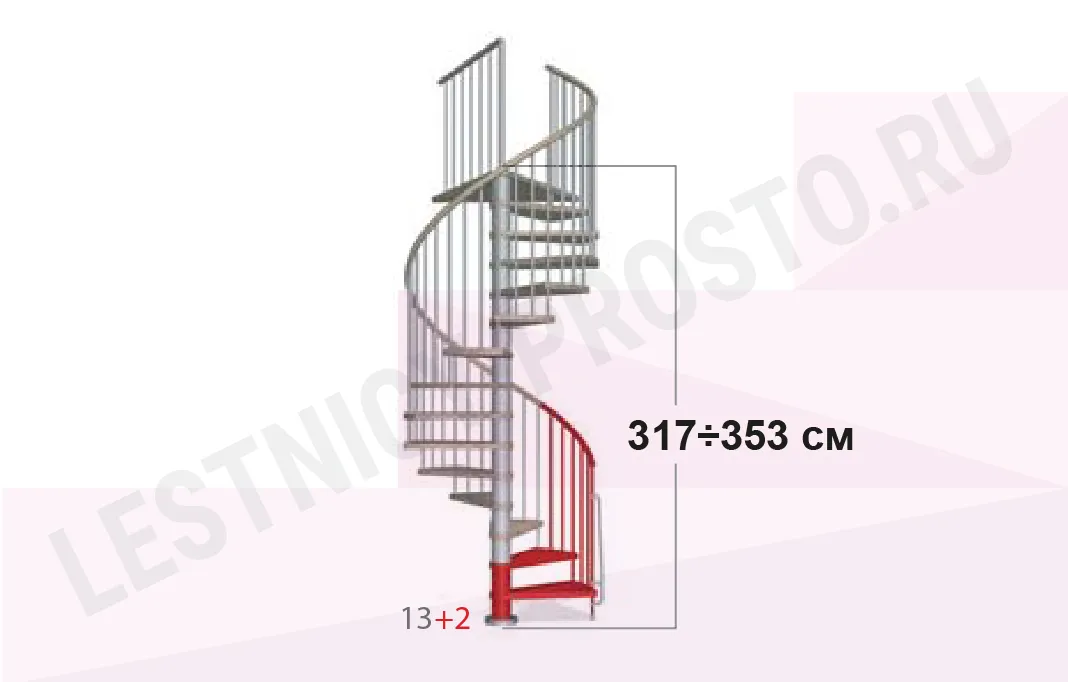 Высота лестницы регулируется при сборке в пределах 2530 - 3060 мм. С помощью дополнительных секций высоту базовой модели можно увеличить до 3770 мм.