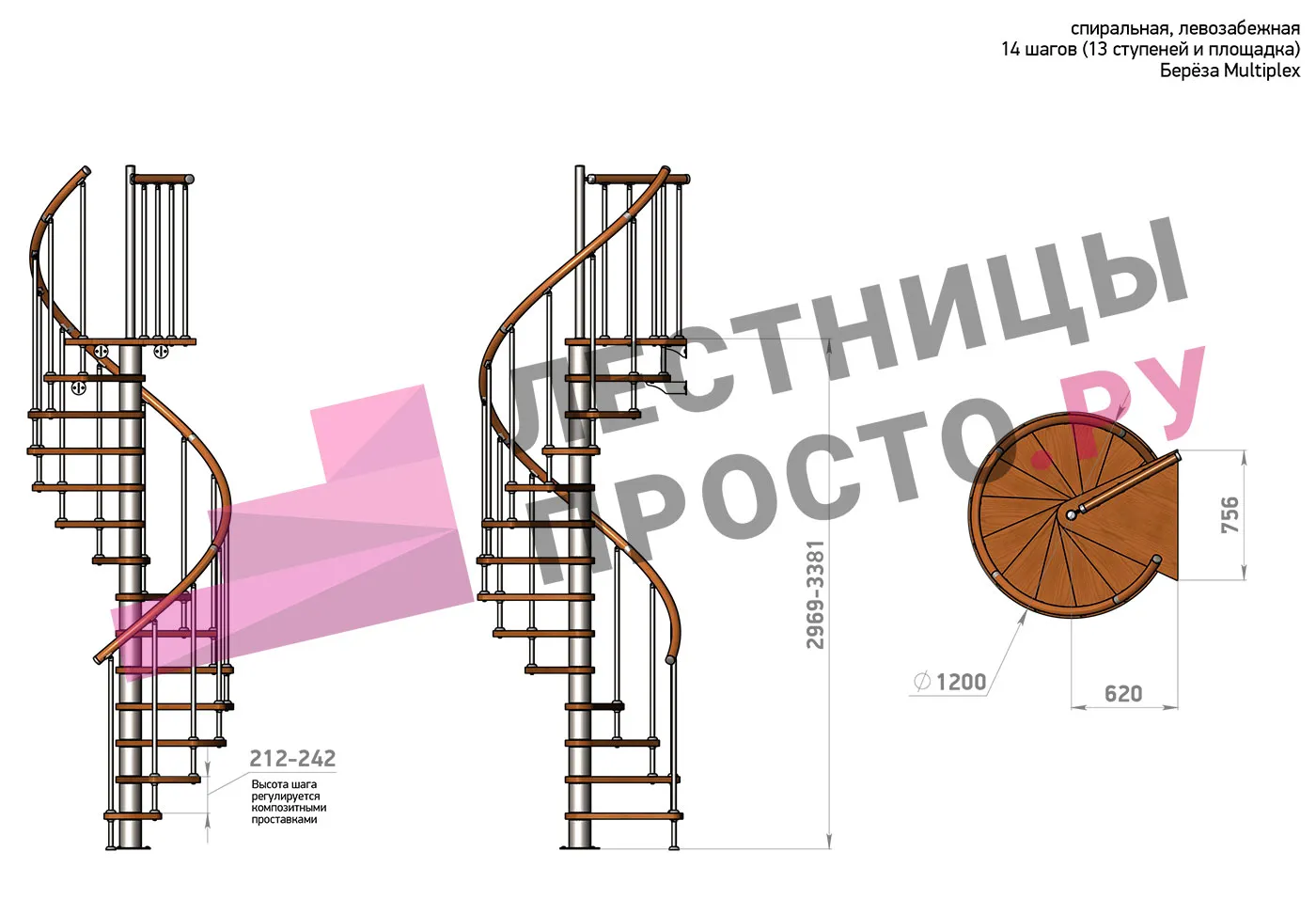 Винтовая лестница Prosto Spiral Black D120см, h296.9-338.1 см