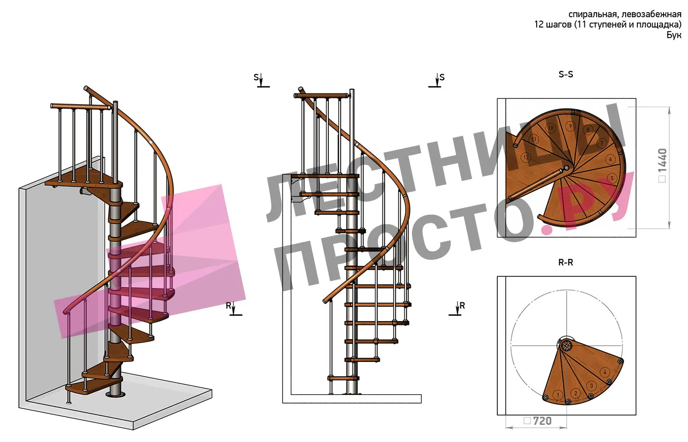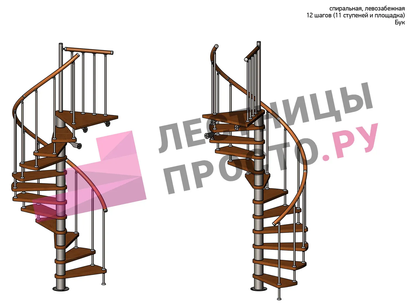 Винтовая лестница Prosto Spiral White D140см, h260.5-304.6 см, бук