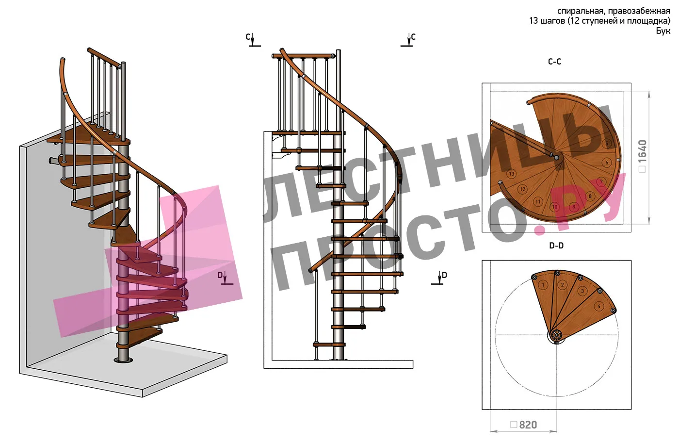 Винтовая лестница Prosto Spiral White D160см, h282.2-326,3 см, бук