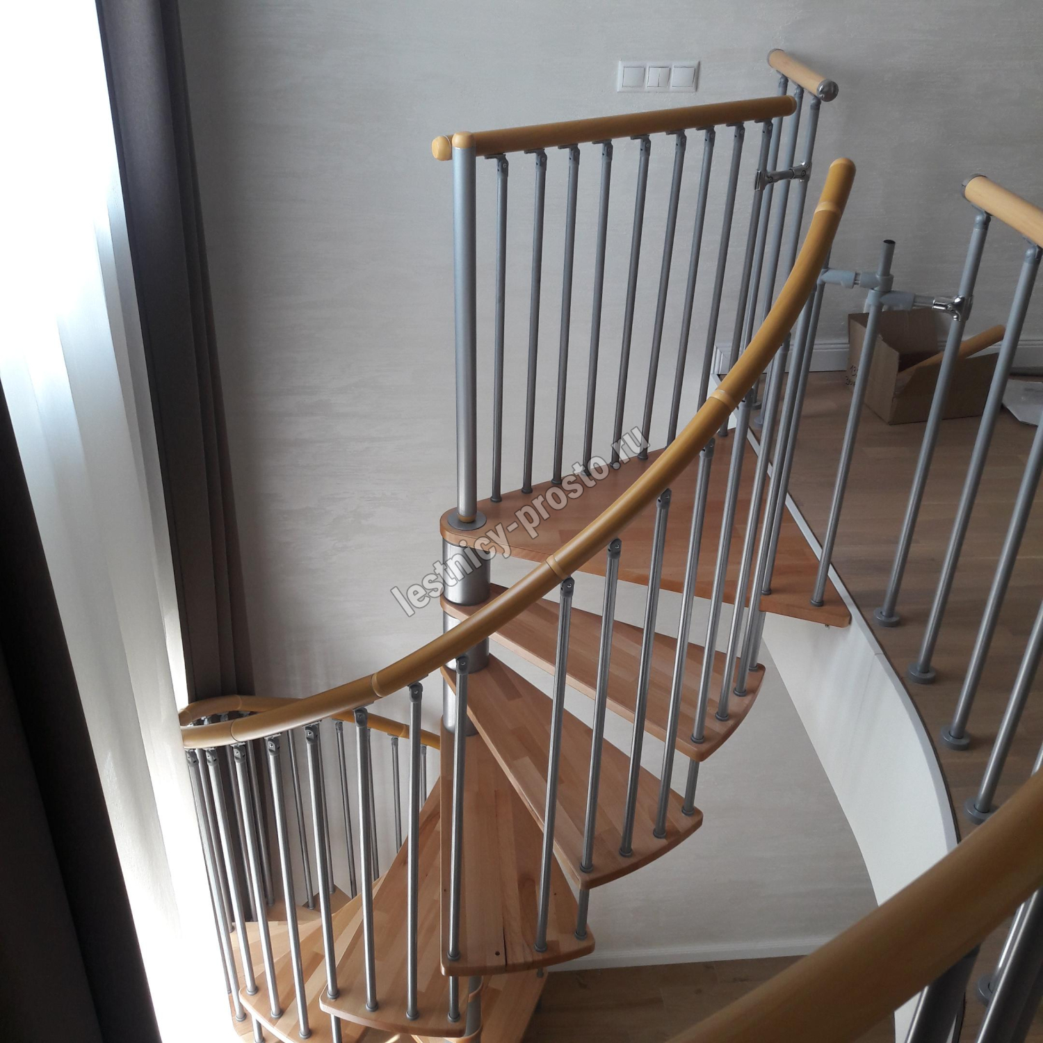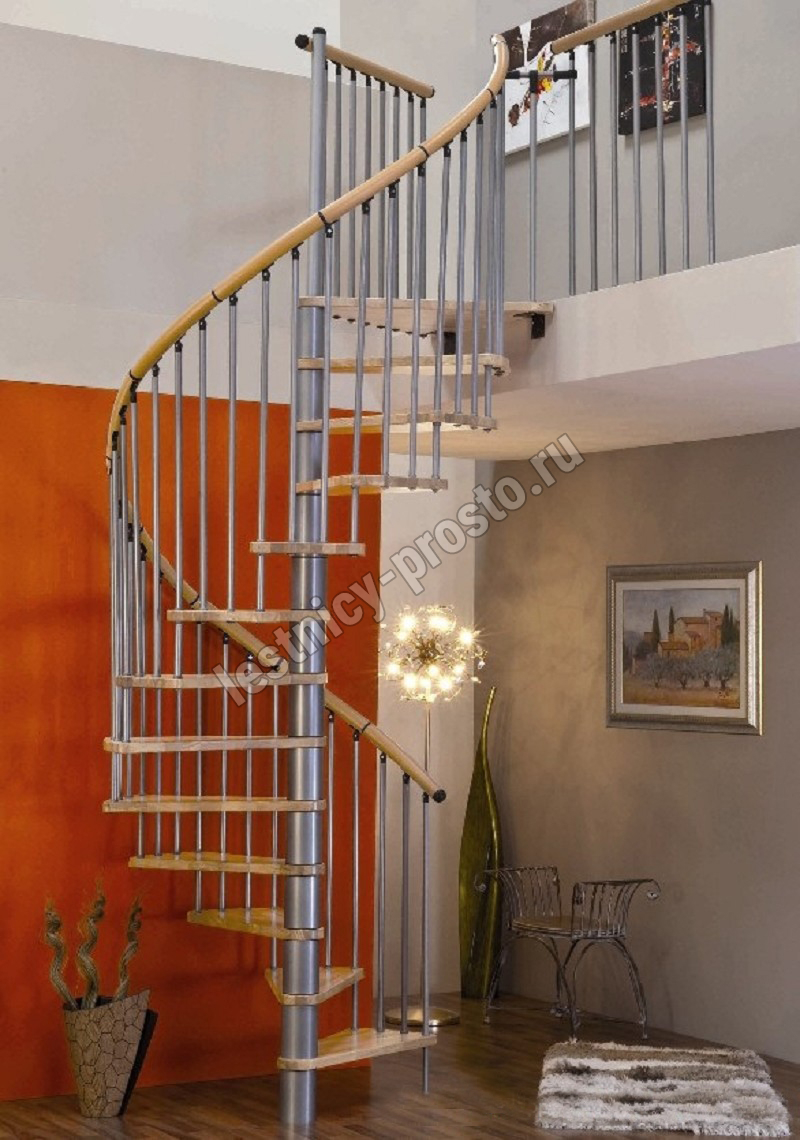 Лестница Spiral Decor d120 см, серебро, бук лакированный