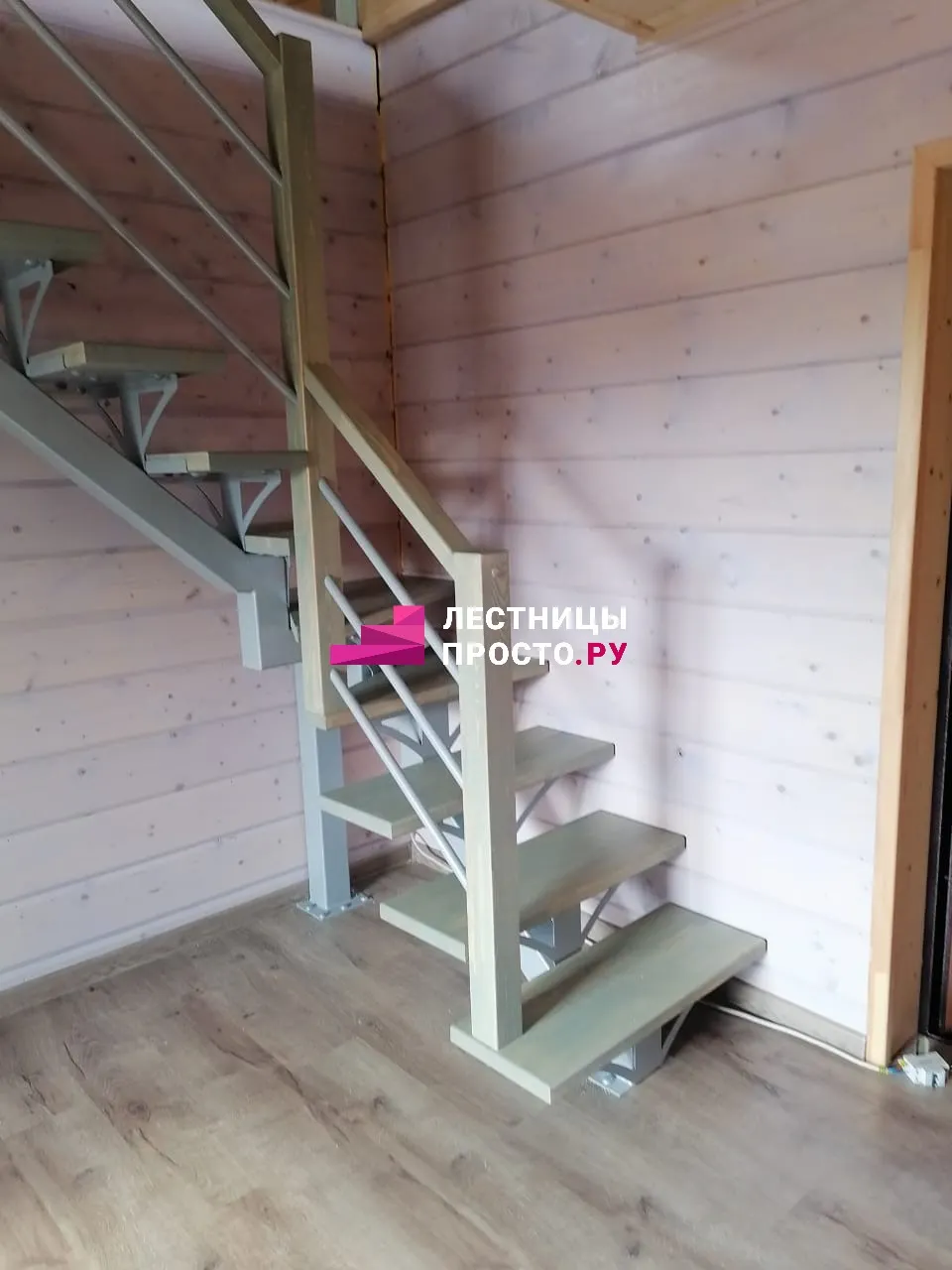 Лестница на центральном каркасе г-обр. металлик, ступени лиственница, LP-151021
