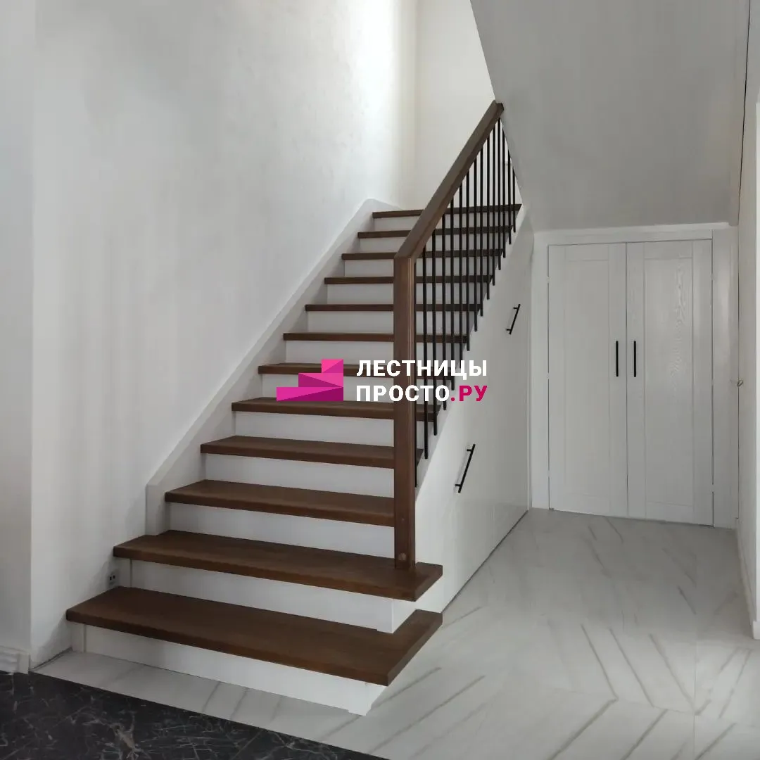 Подступенники, фальш-косоуры и сапожки (пристенной плинтус) выполнены из МДФ.